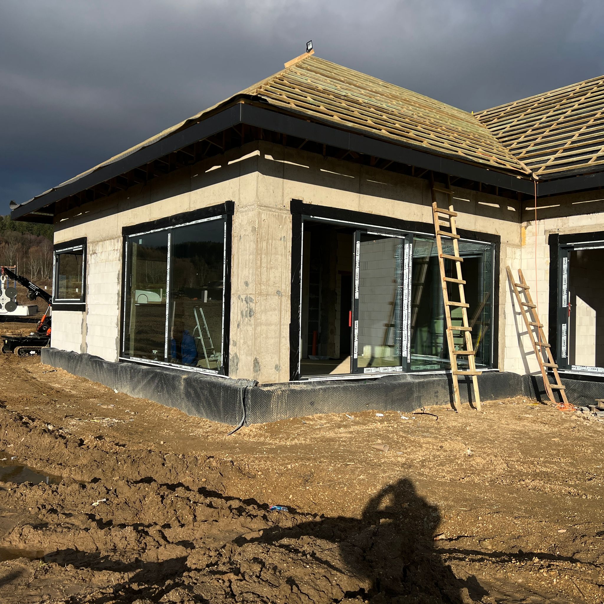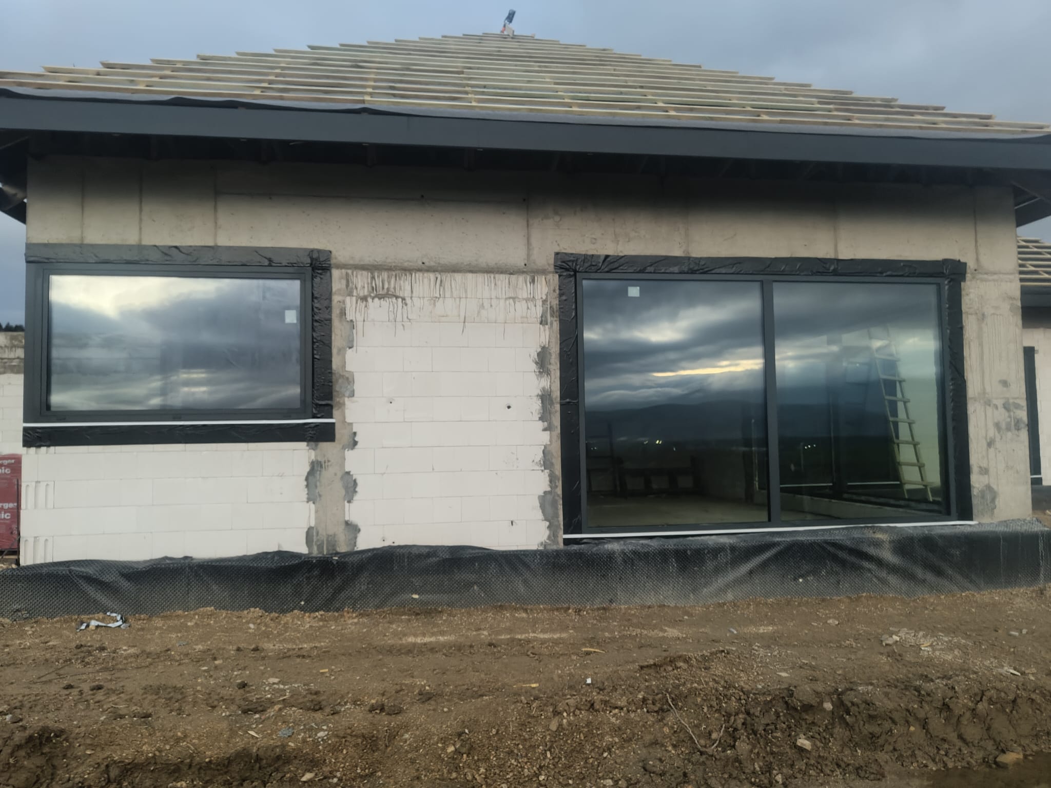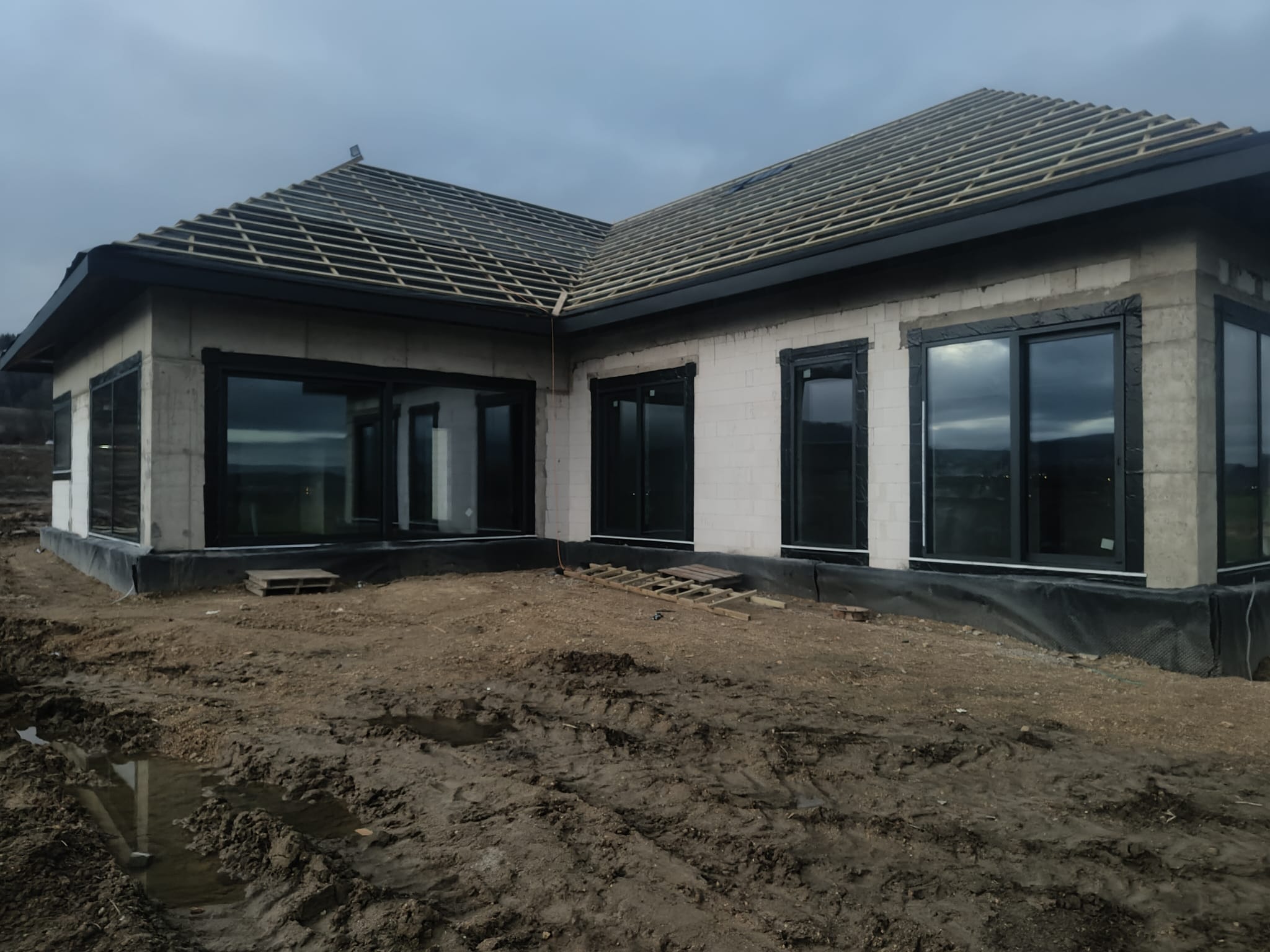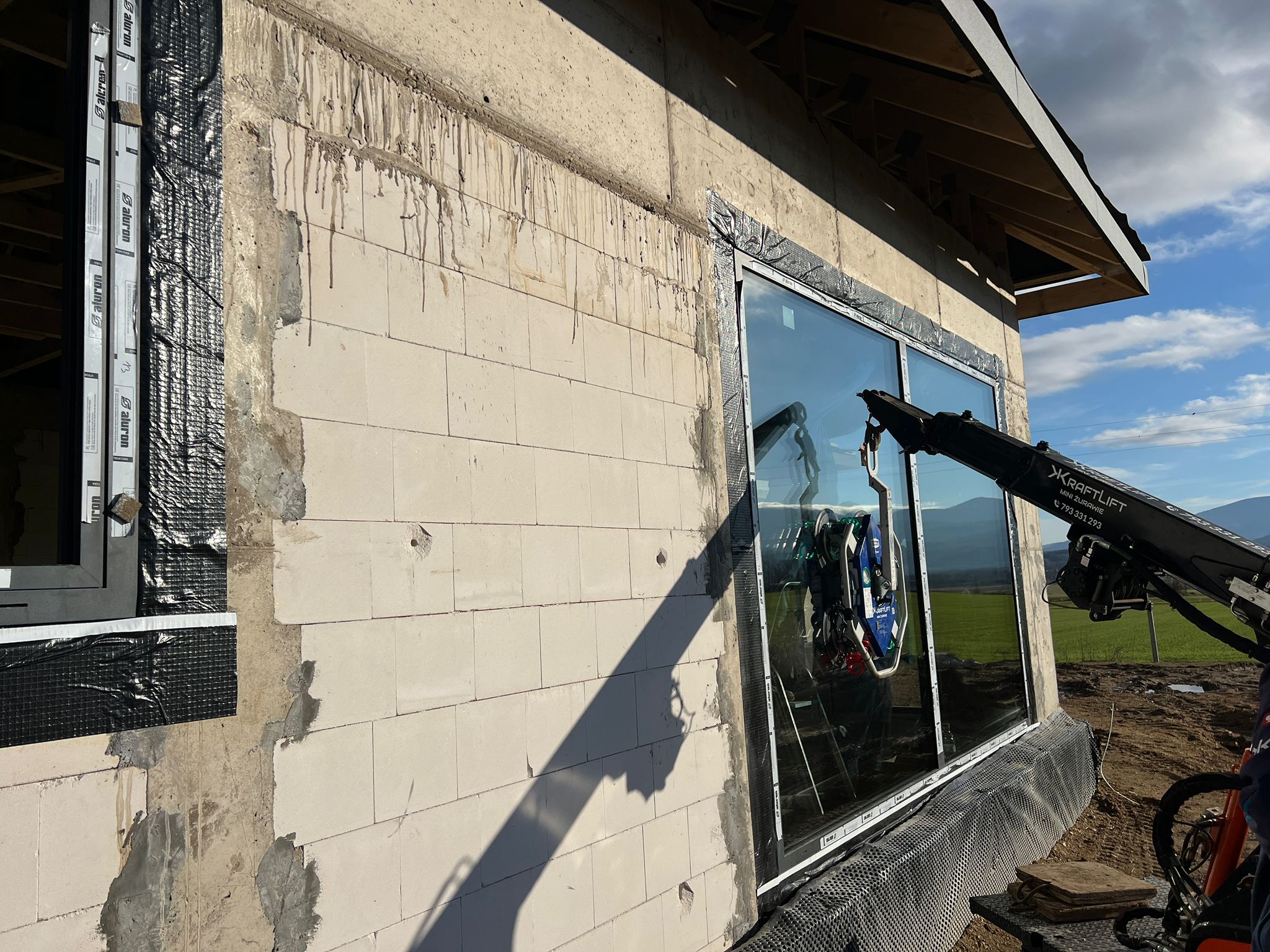 Duże przeszklenia to jedna z niewielu zalet stolarki aluminiowej. Tym razem w budownictwie jednorodzinnym użyliśmy systemów firmy Aluron. Okna podnoszono-przesuwne HST, okna rozwierno-uchylne czy stałe przeszklenia z widokiem na góry dodają uroku każdemu pomieszczeniu.