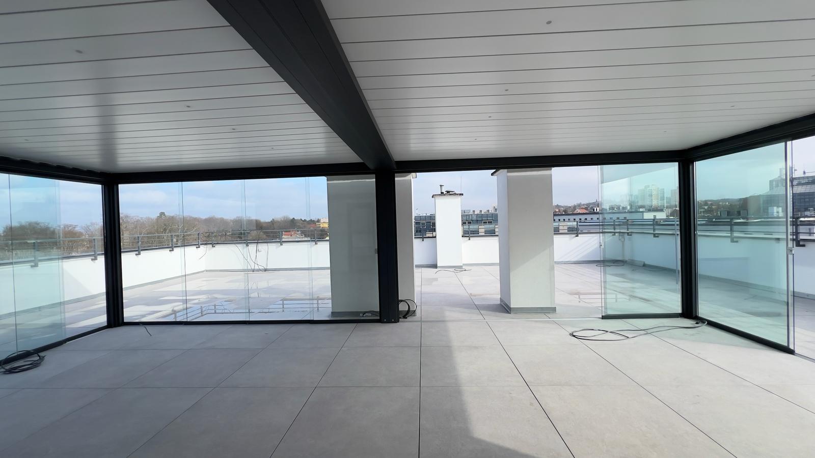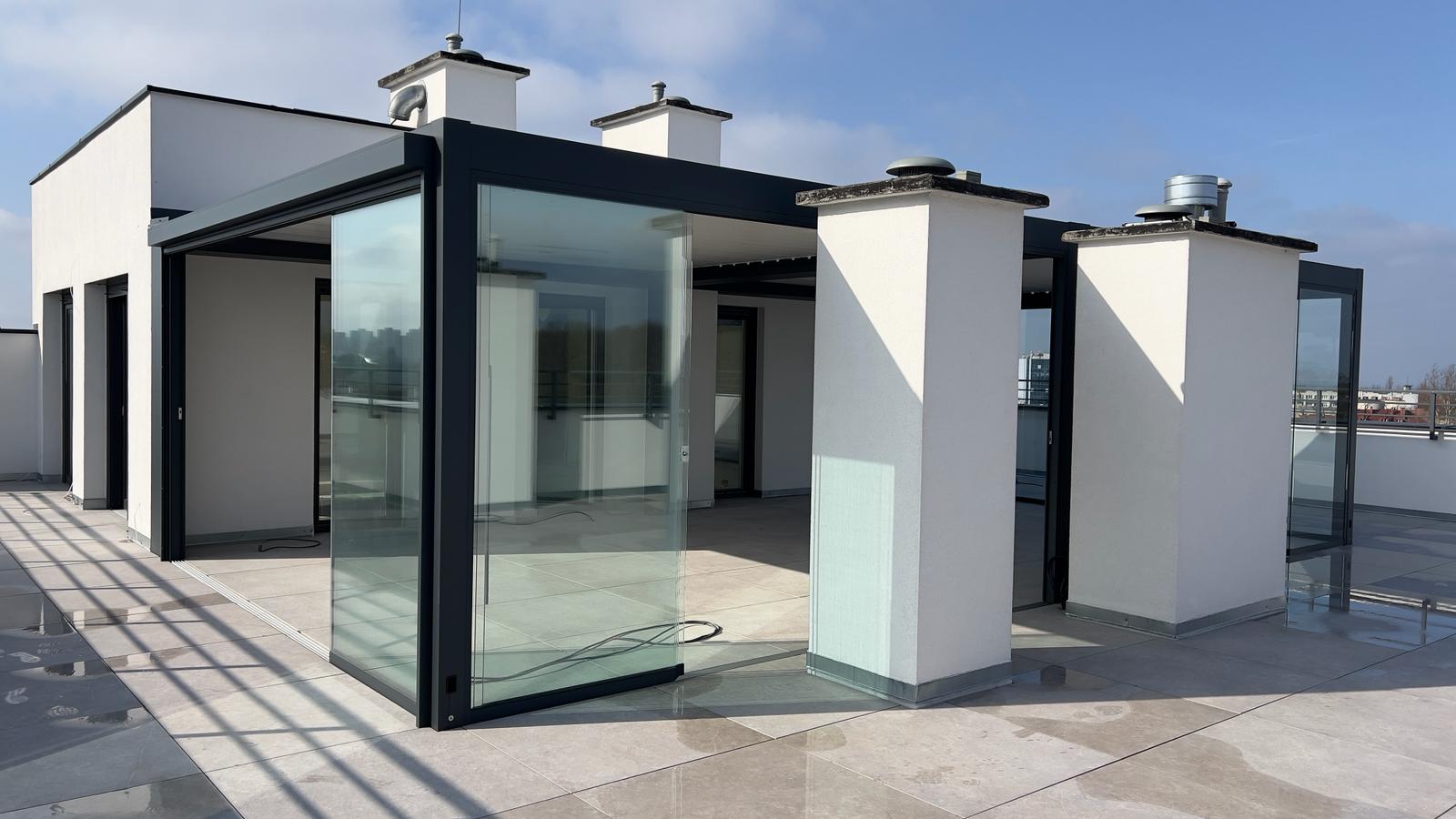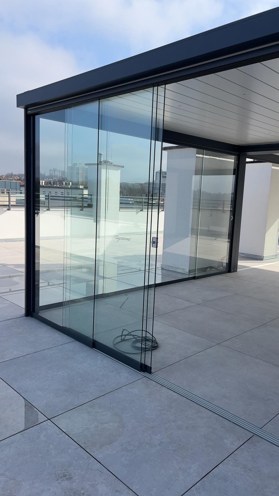 Pergola PREMIUM – to jedna z naszych perełek. Pergola Aluminiowa zamontowana na dachu jednego z bloków w centrum Zielonej Góry.