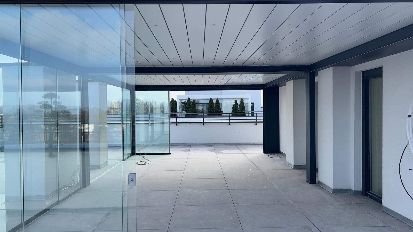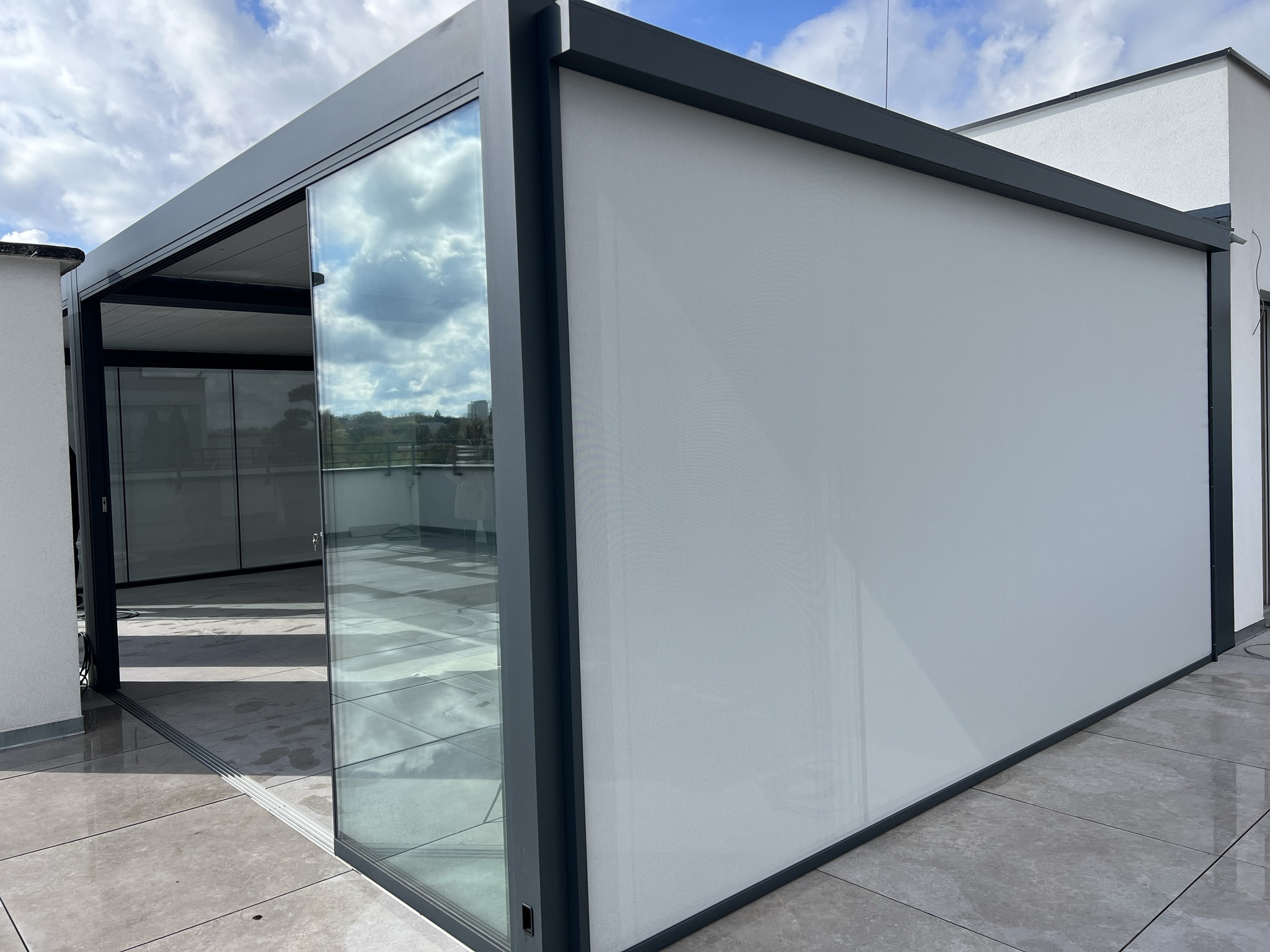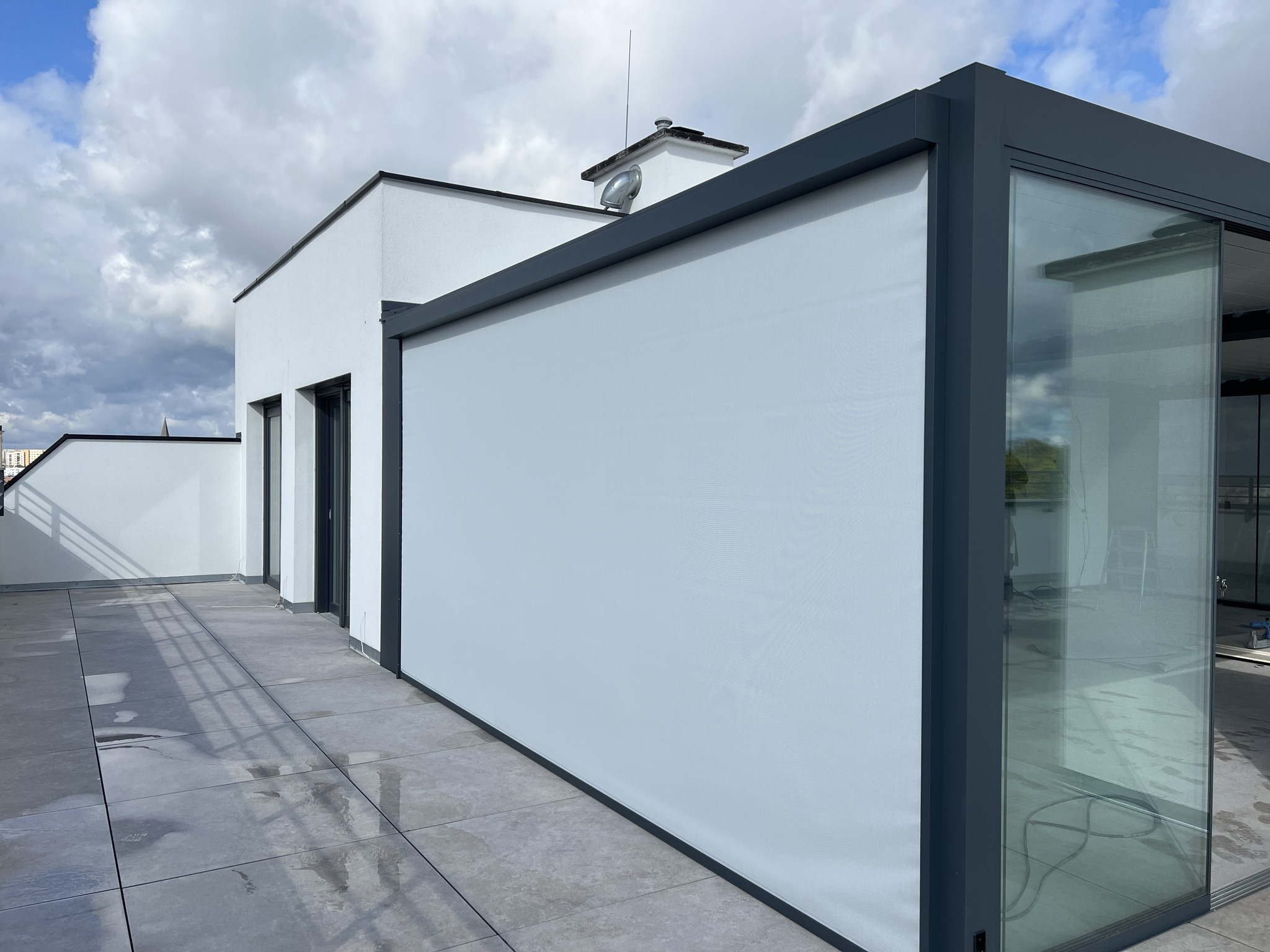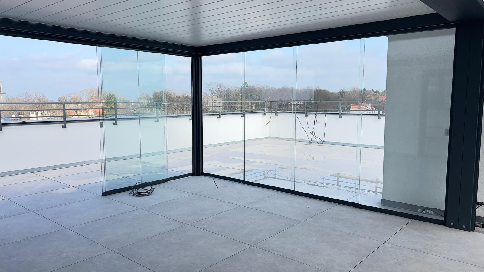 Pergola PREMIUM – to jedna z naszych perełek. Pergola Aluminiowa zamontowana na dachu jednego z bloków w centrum Zielonej Góry.